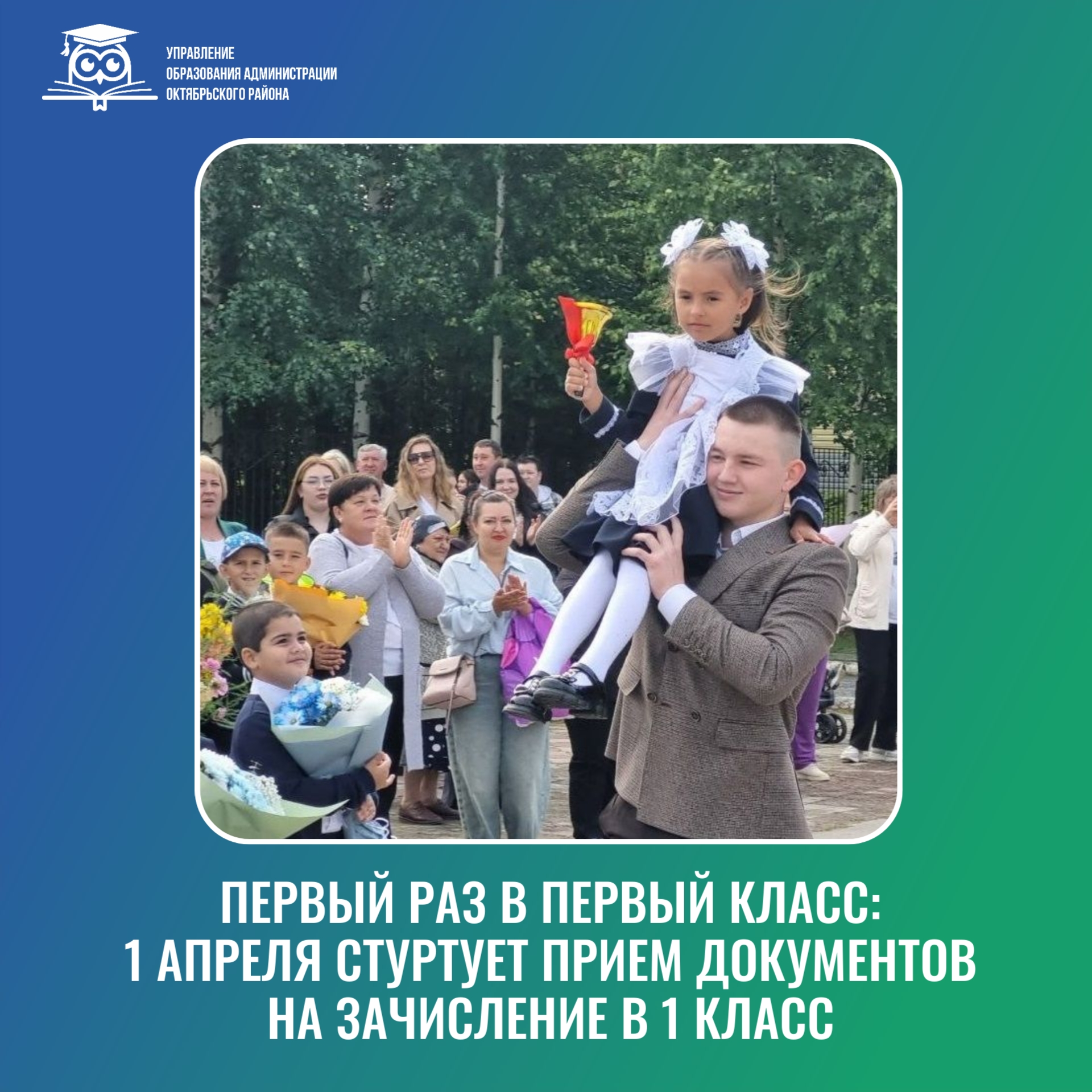 Родителям (законным представителям) детей, не достигших к 1 сентября текущего года 6 лет 6 месяцев и в возрасте более 8 лет, необходимо обратиться в Управление образования администрации Октябрьского района по адресу: пгт. Октябрьское, ул. Калинина, д. 39, кабинет 328, для написания заявления на получение разрешения для обучения ребенка в 1 классе в возрасте менее 6,6 лет или более 8 лет.
