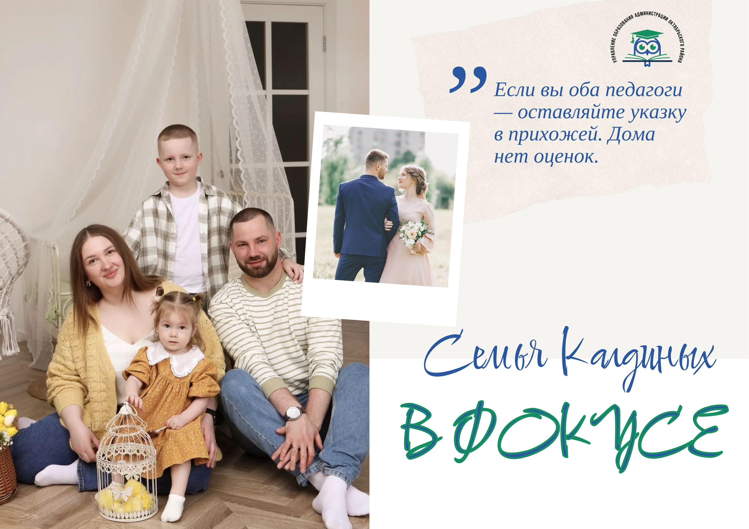 Сегодня в сообществе мы запускаем рубрику "Семья в фокусе", где будем рассказывать о молодых семьях, которые трудятся в системе образования муниципалитета. Первые в нашем фокусе - Михаил и Александра Калдины.