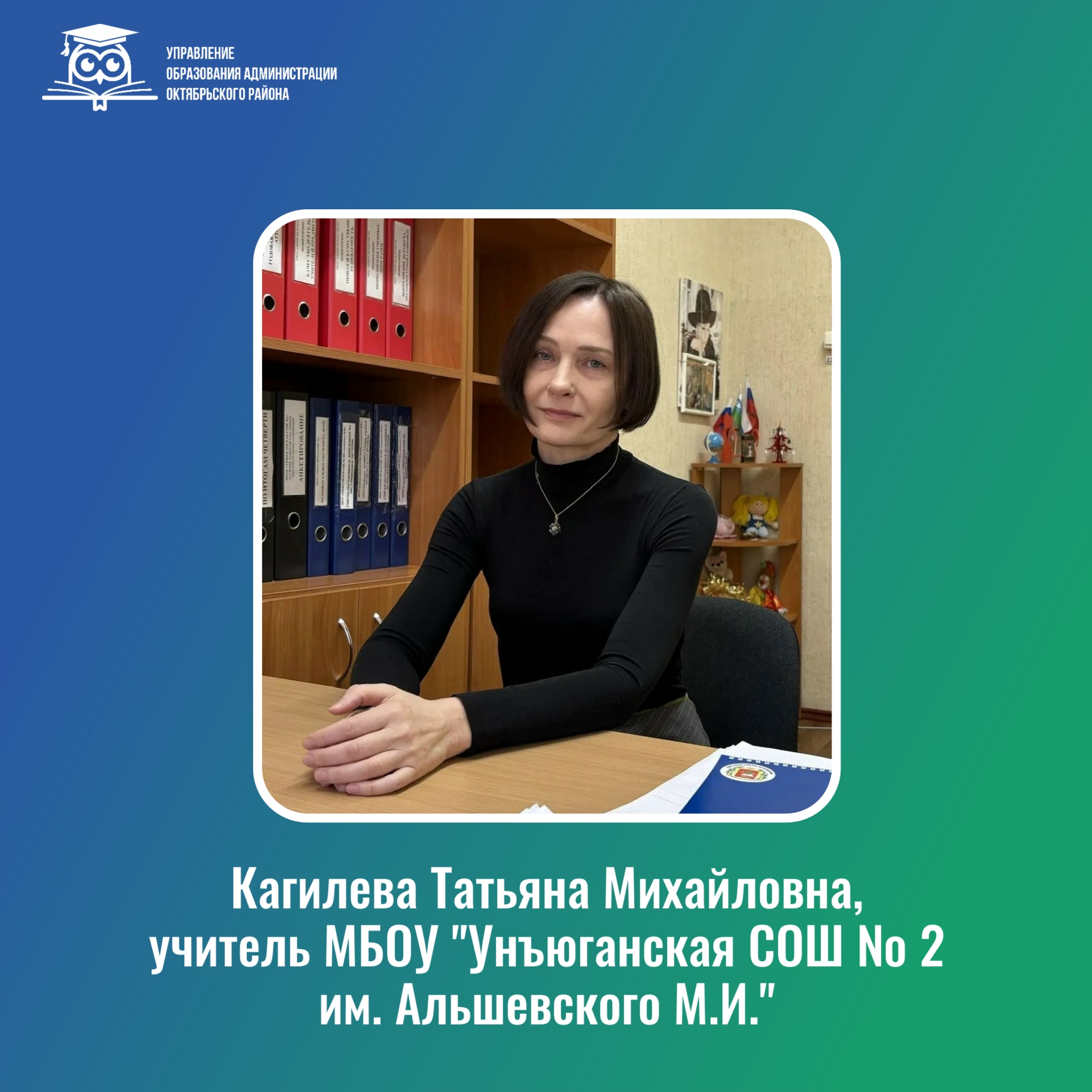 - Татьяне Михайловне Кагилевой, учителю Унъюганской школы № 2 имени Героя Социалистического Труда Альшевского Михаила Ивановича;