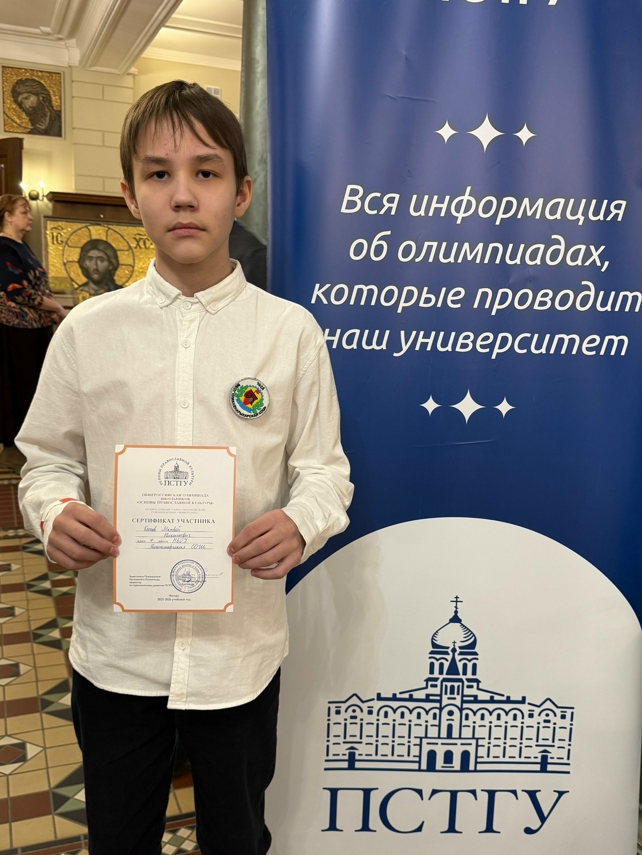 15 марта в Москве прошел финальный тур олимпиады по основам православной культуры для 7-11 классов. Более 1000 участников из 45 регионов России собрались в Православном Свято-Тихоновском университете для того, чтобы показать свои знания в области истории и культуры православия. Наш муниципалитет в составе делегации от Югры представил обучающийся 7 класса Нижненарыкарской школы Матвей Кетов. Юноша достойно выступил в региональном туре и был приглашен в финал олимпиады.