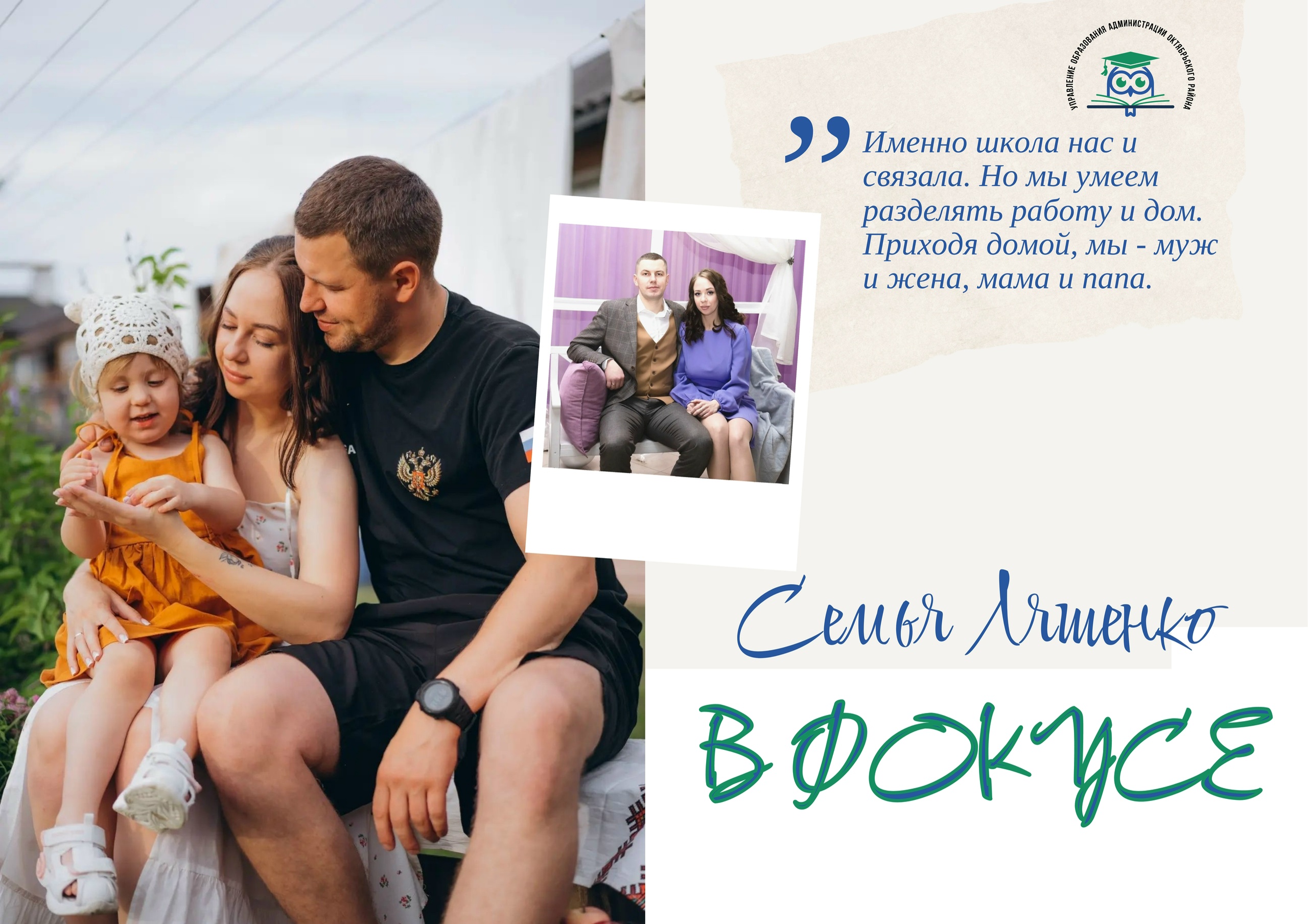 Знакомьтесь, в фокусе семья Ляшенко. Глава семьи, Егор Сергеевич, работает учителем физической культуры, а его супруга, Наталья Александровна, - учителем начальных классов.